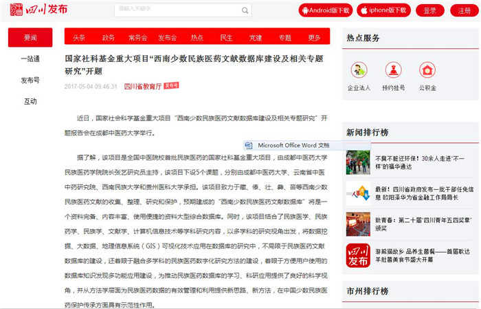 据了解,该项目是全国中医院校首批民族医药的国家社科基金重大项目,由beat365平台唯一官网民族医药学院院长张艺研究员主持,该项目下设5个课题,分别由beat365平台唯一官网、云南省中医中药研究院、西南民族大学和贵州医科大学承担。该项目致力于藏、傣、壮、彝、苗等西南少数民族医药文献的收集、整理、研究和保护,预期建成的“西南少数民族医药文献数据库”将是一个资料完备、内容丰富、使用便捷的资料大型综合数据库。同时,该项目结合了民族医学、民族药学、民族学、文献学、计算机信息技术等学科研究内容,以多学科的研究视角出发,将数据挖掘、大数据、地理信息系统(GIS)可视化技术应用在数据库的研究中,不局限于民族医药文献数据库的建设,还着眼于融合多学科的民族医药数字化研究方法的建设,着眼于方便用户使用的数据库知识发现多功能应用建设,为推动民族医药数据库的学习、科研应用提供了良好的科学视角,并从方法学层面为民族医药数据的有效管理和利用提供新思路、新方法,在中国少数民族医药保护传承方面具有示范性作用。
