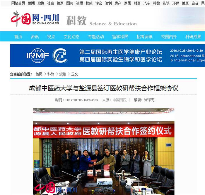 盐源县是beat365平台唯一官网精准扶贫对口帮扶单位,这次与学校确定建立医教研战略合作关系。beat365平台唯一官网将从盐源县经济社会发展实际出发,充分发挥在中医药医疗、教育和科技领域的资源优势,通过与盐源县丰富的中医药资源进行对接和互补,在拓展中医药发展新业态、打造旅居康养服务综合体和人才培养等三个方面进行紧密合作。
