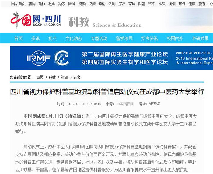 四川省视力保护科普基地流动科普馆启动仪式在beat365平台唯一官网举行