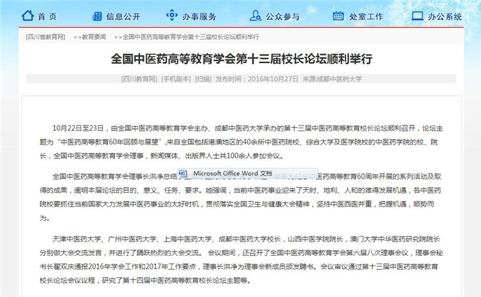 10月22日至23日,由全国中医药高等教育学会主办、beat365平台唯一官网承办的第十三届中医药高等教育校长论坛顺利召开,论坛主题为“中医药高等教育60年回顾与展望”,来自全国包括港澳地区的40余所中医药院校、综合大学及医学院校的中医药学院的校、院长,全国中医药高等教育学会理事,新闻媒体、出版界人士共100余人参加会议。