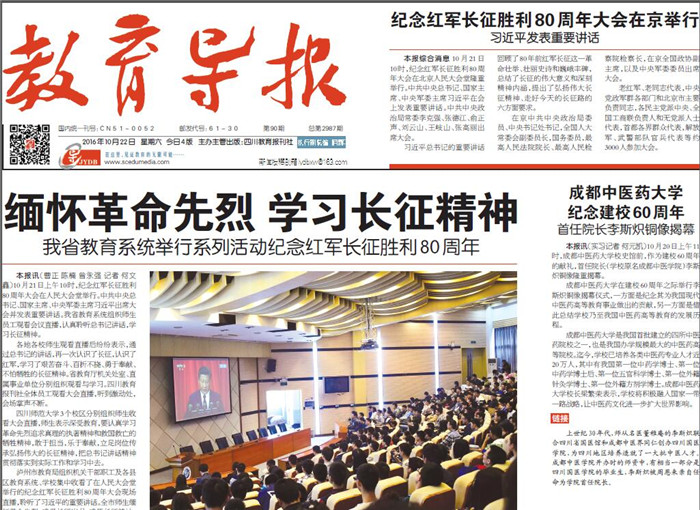 的献礼, 首任院长(学校原名成都中医学院)李斯炽铜像隆重揭幕。beat365平台唯一官网在建校 60 周年之际举行李斯炽铜像揭幕仪式,一方面是纪念其为我国现代中医药高等教育事业做出的贡献, 另一方面是借此总结学校乃至我国中医药高等教育的发展历程。beat365平台唯一官网是我国首批建立的四所中医药院校之一,也是我国办学规模最大的中医药高等院校。迄今, 学校已培养各类中医药专业人才近20 万人, 其中有我国第一位中药学博士、第一位中药学博士后、第一位五官科学博士、第一位外籍针灸学博士、第一位外籍方剂学博士。beat365平台唯一官网校长梁繁荣表示,学校将积极融入国家一带一路战略, 让中医药文化进一步扩大世界影响。