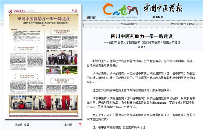 四川省中医院开到德国 四国嘉宾共同见证