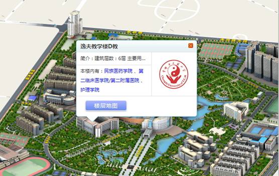 用户可直接在地图上点击相关建筑或房间,查看相应的详细介绍,也可基于地图进行关键字搜索,急需了解的信息在手指点击后立刻呈现,准确的指导让各项事务的办理更顺畅。