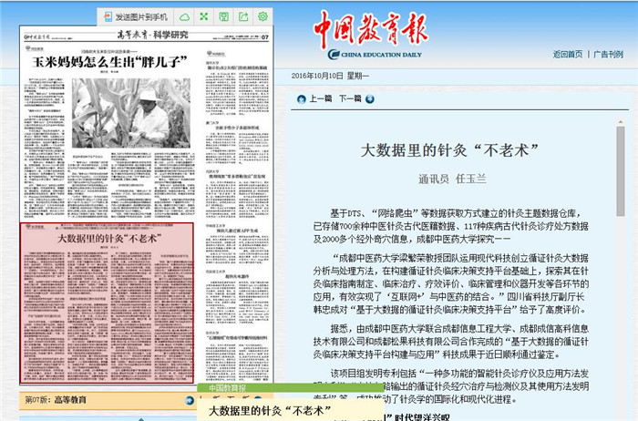 有了突破口,谁来做技术攻关就明确了。项目组迅速与成都信息工程大学计算机学院联系协调,引入大数据分布式存储、计算、分析和服务技术方法,开始了循证针灸临床诊疗决策支持平台的创建之路,在针灸信息采集、存储、分析及提取针灸决策规律,针灸信息和分析结果用于临床及科研等方面逐一攻克并取得了卓有成效的科研成果: