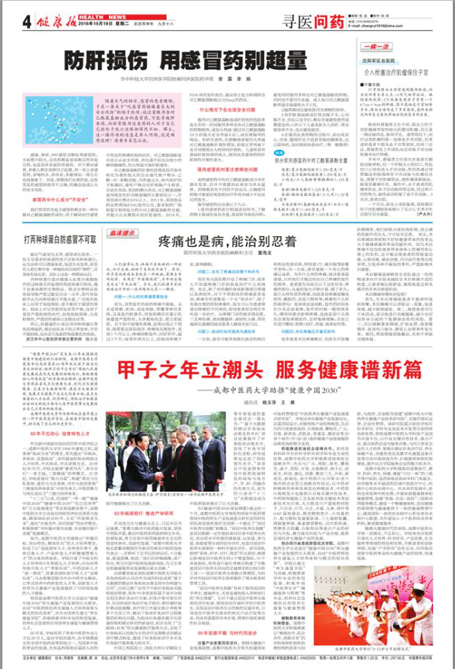 “健康中国2030”是未来15年我国推进健康中国建设的行动纲领。beat365平台唯一官网党委书记马跃荣在60周年校庆前夕接受记者采访时说:按照习近平总书记“要把人民健康发展放在优先发展的战略地位,要把健康融入所有政策”的重要讲话精神,beat365平台唯一官网将在普及卫生健康生活、优化卫生健康服务、完善卫生健康保障、建设卫生健康环境、发展卫生健康产业五大任务方面,在卫生健康的人才培养、科学研究、预防治疗和服务社会四大职能方面为人类中医药事业发展做出自己应有的积极贡献。
