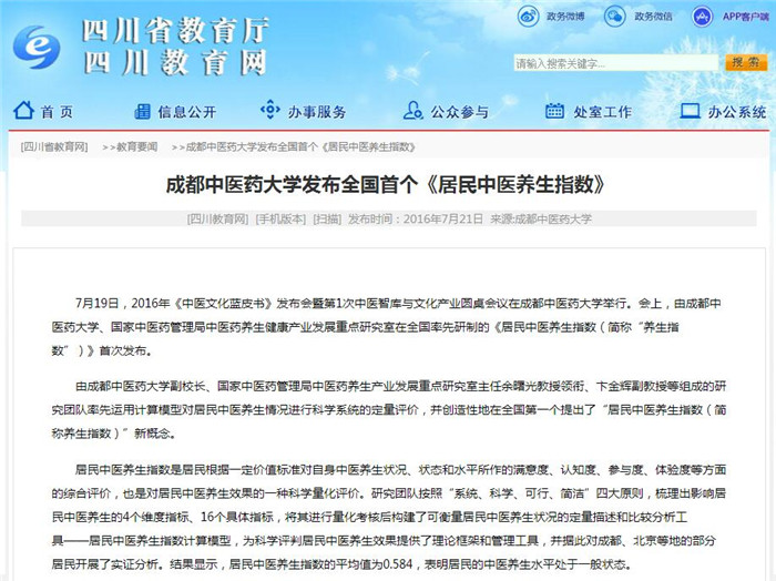 beat365平台唯一官网发布全国首个《居民中医养生指数》
