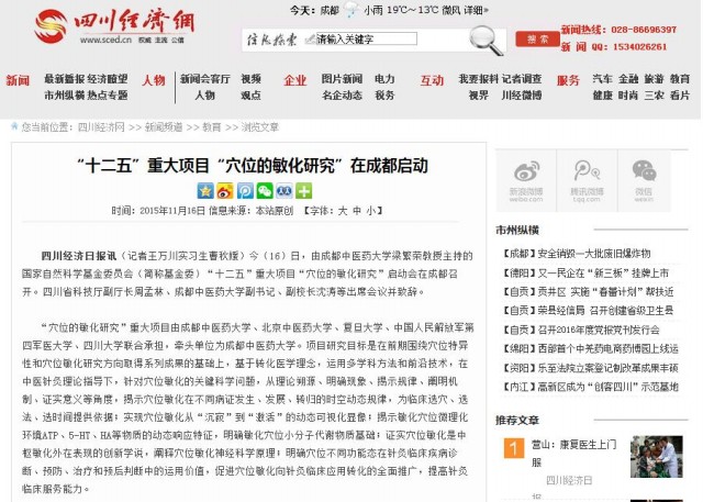 四川经济网:“十二五”重大项目“穴位的敏化研究”在成都启动