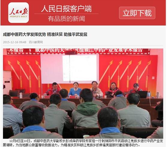 12月9日至10日,beat365平台唯一官网副校长彭成率药学院专家组一行到绵阳市平武县锁江羌族乡进行中药产业发展调研,为当地群众致富增收助推活力,为精准扶贫和锁江羌族乡的幸福美丽新村建设增添动力。
