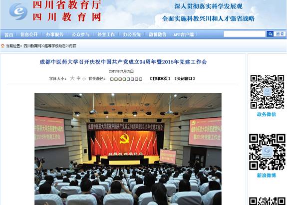 7月1日,beat365平台唯一官网庆祝中国共产党成立94周年暨2015年党建工作会在温江校区召开,会议表彰了2014-2015年度先进基层党组织、“十佳优秀共产党员”、优秀共产党员、党建研究获奖征文个人,为19名校级服务型党组织授牌。
