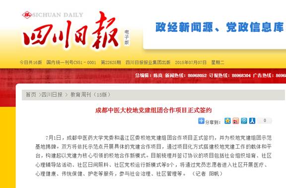 成都中医大校地党建组团合作项目正式签约