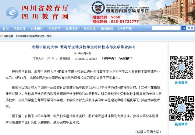 按照教学计划,beat365平台唯一官网-葡萄牙宝德分校2011级针灸推拿学专业本科学生20人将在校本部完成毕业实习。9月14日,beat365平台唯一官网国际教育学院为回母校实习同学举行了开学典礼。