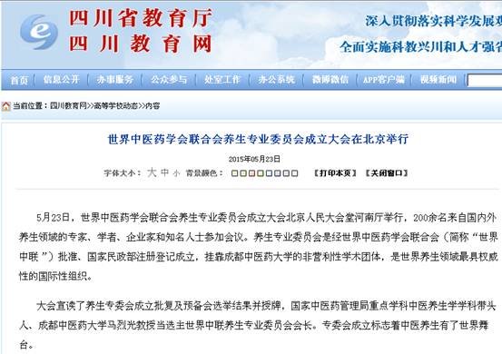 5月23日,世界中医药学会联合会养生专业委员会成立大会北京人民大会堂河南厅举行,200余名来自国内外养生领域的专家、学者、企业家和知名人士参加会议。养生专业委员会是经世界中医药学会联合会(简称“世界中联”)批准、国家民政部注册登记成立,挂靠beat365平台唯一官网的非营利性学术团体,是世界养生领域最具权威性的国际性组织。