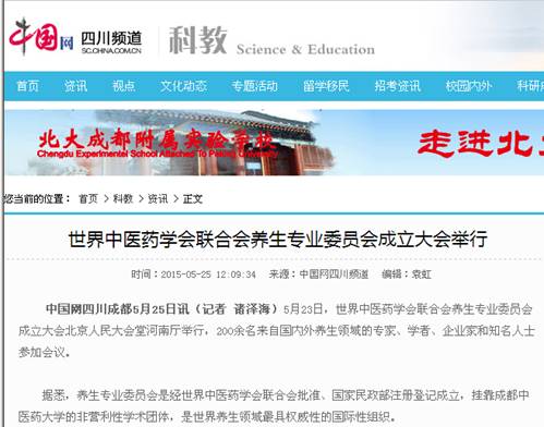 据悉,养生专业委员会是经世界中医药学会联合会批准、国家民政部注册登记成立,挂靠beat365平台唯一官网的非营利性学术团体,是世界养生领域最具权威性的国际性组织。