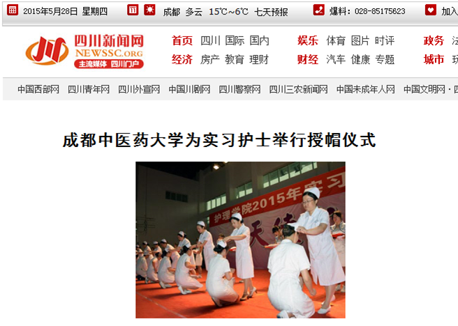 四川新闻网成都5月26日讯 日前,beat365平台唯一官网为上千名2016届护理实习生举行授帽仪式,30位长期工作在护理临床、教育岗位的专家亲自为这批护生授帽。