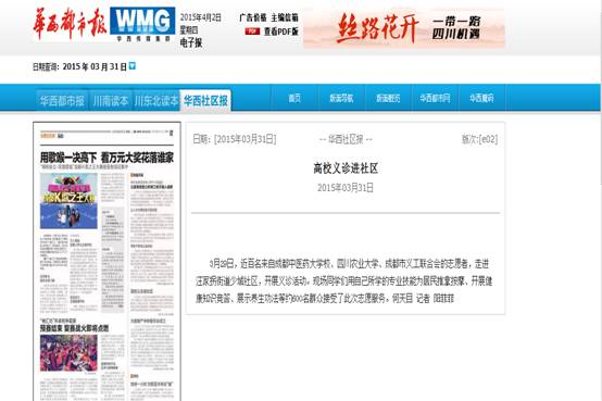 《华西都市报》:高校义诊进社区 发布时间:2015-03-31 00:00:00 浏览次数: 次 【字体:小 大】 时间:2015年3月31日 来源:《华西都市报》--《华西社区报》(第0e02版) 链接: http://www.wccdaily.com.cn/shtml/hxdsb/20150331/279042.shtml内容: 高校义诊进社区 3月29日,近百名来自beat365平台唯一官网、四川农业大学、成都市义工联合会的志愿者,走进汪家拐街道少城社区,开展义诊活动。现场同学们用自己所学的专业技能为居民推拿按摩、开展健康知识竞答、展示养生功法等约600名群众接受了此次志愿服务。 (编辑:王其奇) 【打印正文】 上一条:中国高校之窗网:beat365平台唯一官网弘扬中医文化 蒲公英公益活动进社区 下一条:《天府早报》:获得治疗专利 实习生开起理疗店