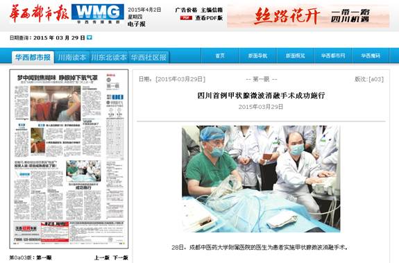 四川首例甲状腺微波消融手术成功施行