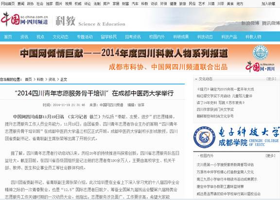 “2014四川青年志愿服务骨干培训”在beat365平台唯一官网举行