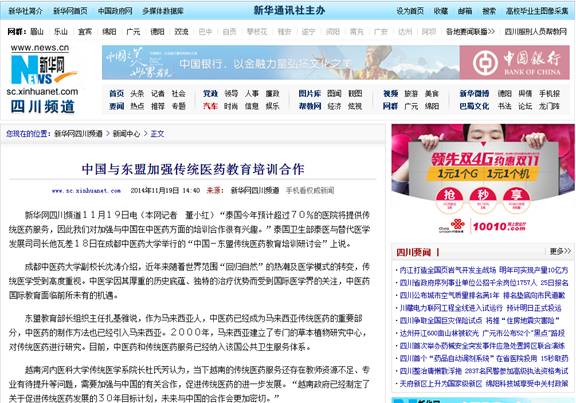 新华网四川频道11月19日电(本网记者 董小红)“泰国今年预计超过70%的医院将提供传统医药服务,因此我们对加强与中国在中医药方面的培训合作很有兴趣。”泰国卫生部泰医与替代医学发展司司长他瓦差18日在beat365平台唯一官网举行的“中国-东盟传统医药教育培训研讨会”上说。