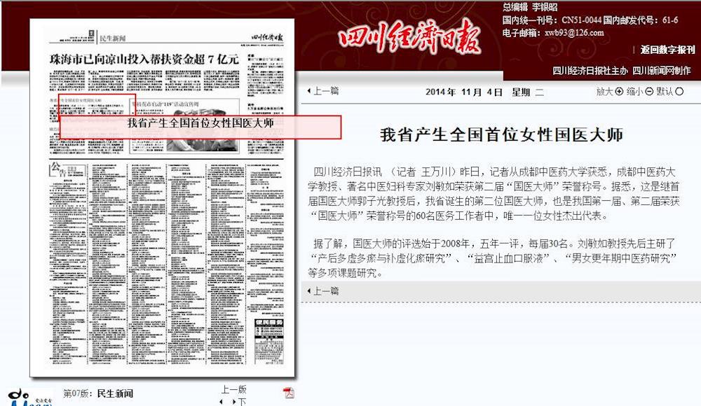 据了解,国医大师的评选始于2008年,五年一评,每届30名。刘敏如教授先后主研了“产后多虚多瘀与补虚化瘀研究”、“益宫止血口服液”、“男女更年期中医药研究”等多项课题研究。