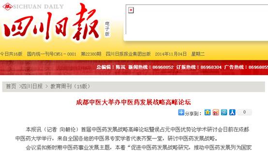 成都中医大举办中医药发展战略高峰论坛