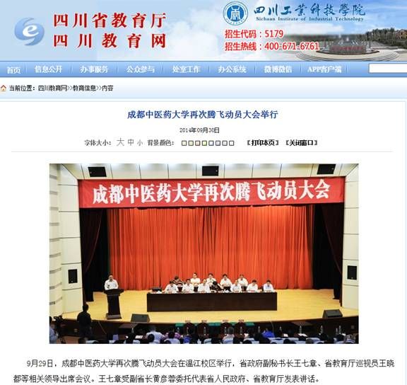 9月29日,学校再次腾飞动员大会在温江校区举行,吸引多家媒体关注。动员大会前,校长梁繁荣就学校实施再次腾飞战略接受了四川教育电视台、四川日报、成都晚报、人民网、中国网、四川新闻网等多家媒体记者的集中采访。以下是部分媒体报道信息: