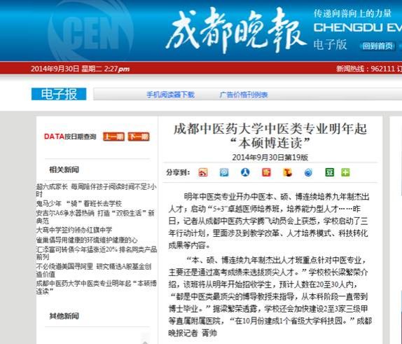 成都中医大将开办本硕博九年制人才班