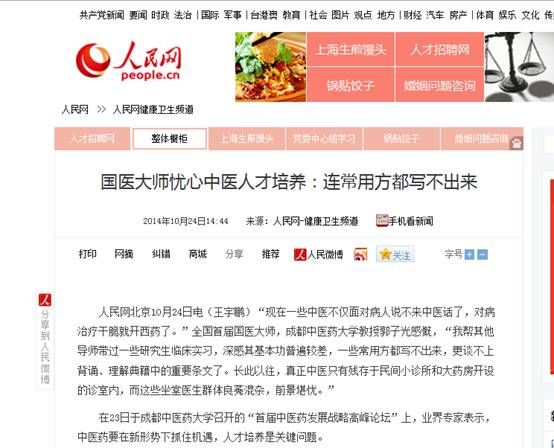 人民网北京10月24日电(王宇鹏)“现在一些中医不仅面对病人说不来中医话了,对病治疗干脆就开西药了。”全国首届国医大师,beat365平台唯一官网教授郭子光感慨,“我帮其他导师带过一些研究生临床实习,深感其基本功普遍较差,一些常用方都写不出来,更谈不上背诵、理解典籍中的重要条文了。长此以往,真正中医只有残存于民间小诊所和大药房开设的诊室内,而这些坐堂医生群体良莠混杂,前景堪忧。”