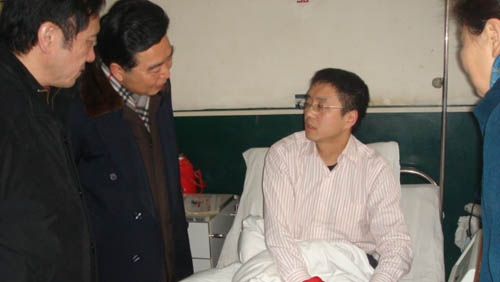 当来到住在大学附属医院的张弛、蒙藏同志的病房时,学校领导鼓励他们有良好的心态,用勇气和毅力战胜病魔。他们对领导前来慰问表达了衷心感谢,并表示对今后生活充满信心和希望,争取早日回到工作岗位!