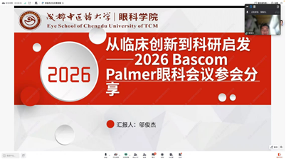 为搭建国际学术交流平台,促进中外视野交融与思想碰撞,分享前沿研究成果与学习心得,2026年03月25日,beat365平台唯一官网眼科学院国际交流协会成功举办“拓展国际视野·聚焦学术前沿”学术分享会。本次分享会聚焦Bascom Palmer Eye Institute Annual Scientific Meeting与Alberta Ophthalmology Annual Scientific Conference两场国际高水平眼科学术会议,特邀眼科学院院长路雪婧、协会指导老师王寒冰出席,分享会由学术部部长苑文慧主持。
